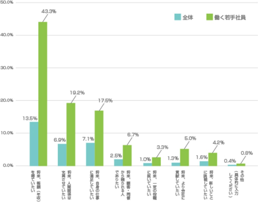 働く若手社員の回答においては、全体に比較してもやや強くその傾向が現れています。