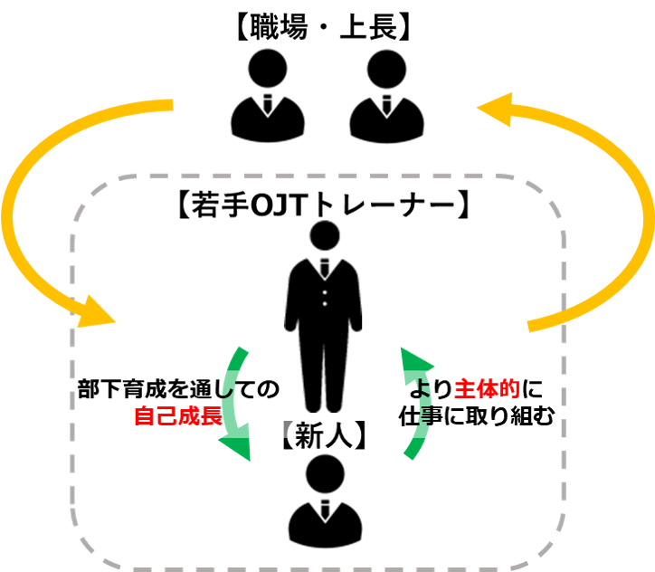 - 育つのは新人だけではない、OJTを通じてトレーナーも育っていくプログラムである