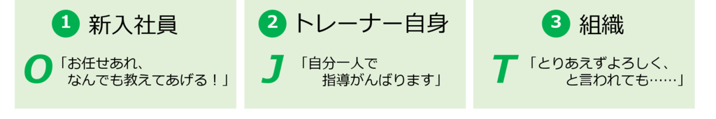 - OJTを通してのトレーナー自身の成長がデザインされていない