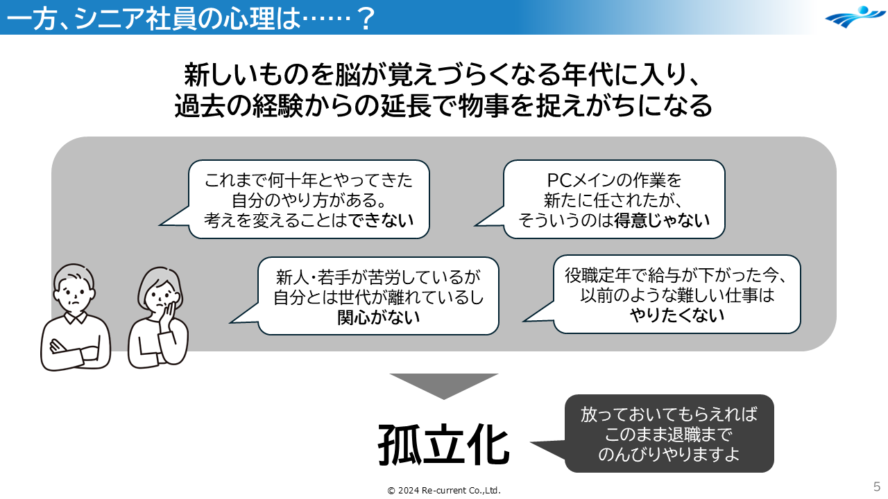 シニア社員もそのようにコミュニケーションを閉じ、孤立してしまっているのです。
