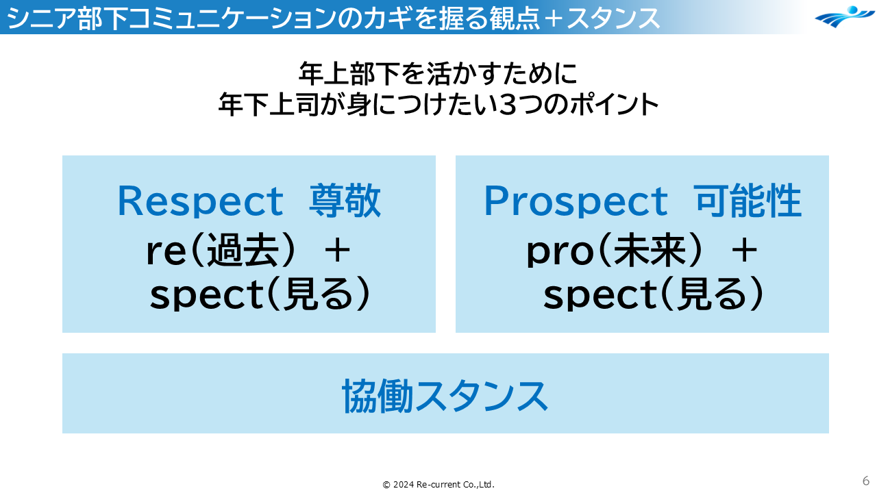 表面的・形式的なリスペクトではなく、シニア社員の方々がこれまでどのような価値観を築き上げてきたかに注目し、その価値観を尊重することが必要です。
