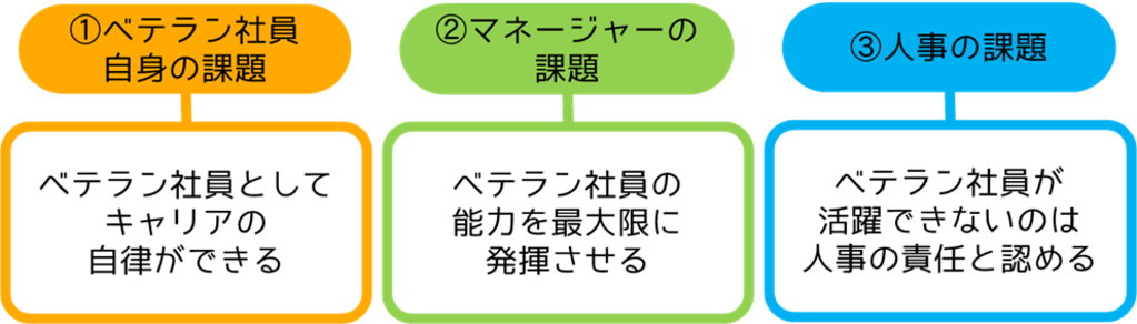 この中でも特に重要なのが「①ベテラン社員自身の課題」。