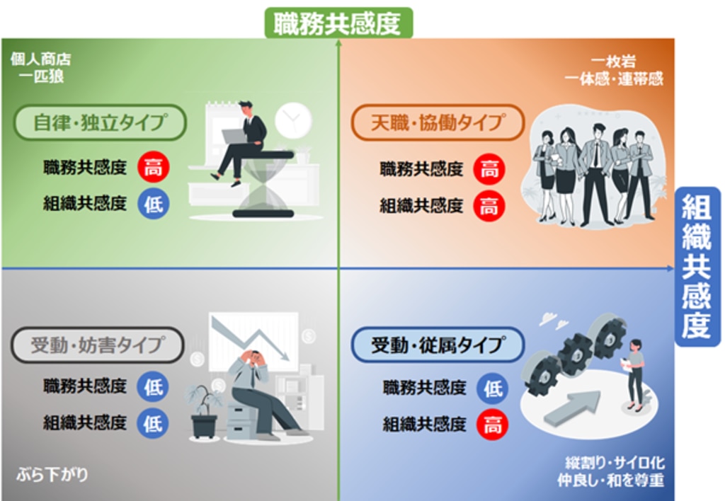組織・職務共感度による従業員の4タイプ