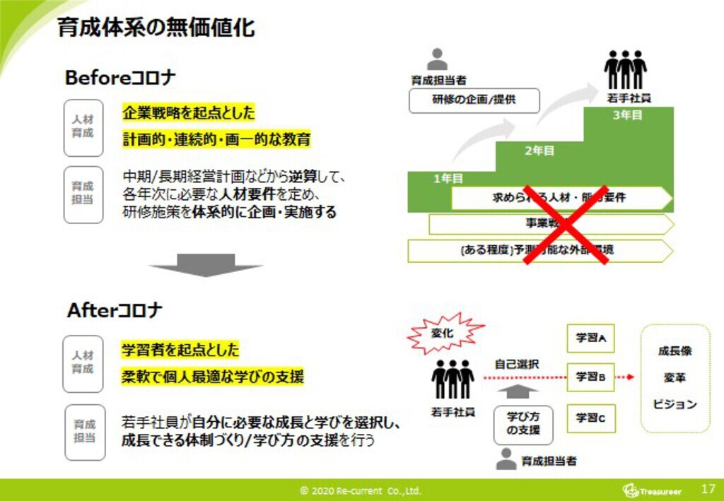 育成体系をつくることが無駄になったということではなく、すべての社員が自分事として、学びを自分でデザインできるように育成に求められることが変化しているのです。