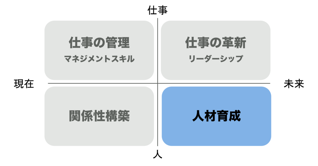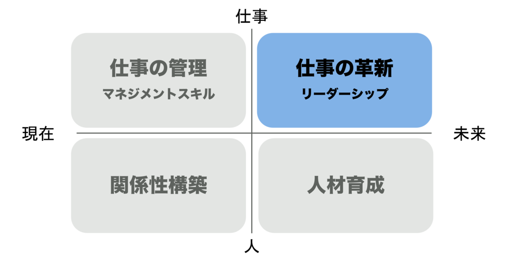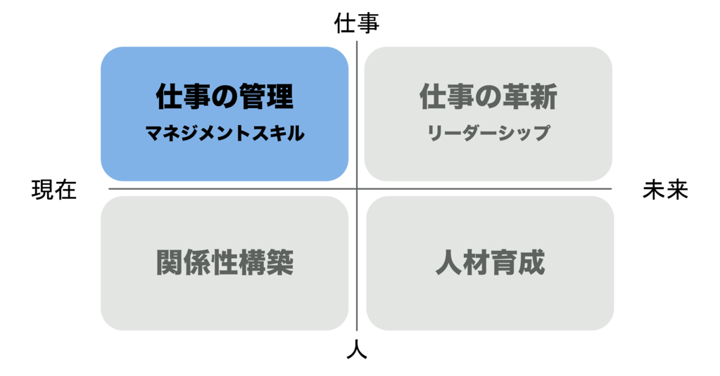 ・「管理職に求めるもの」を「仕事/人」×「未来/現在」の4象限で整理する