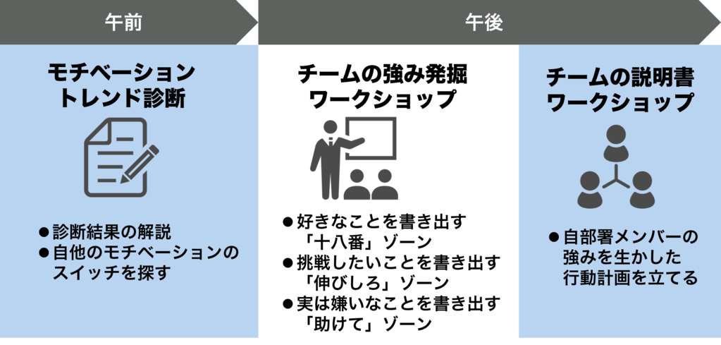 コンテンツはチームビルディングを主として、管理職がメンバーそれぞれの強みを把握できるよう設計されています。
