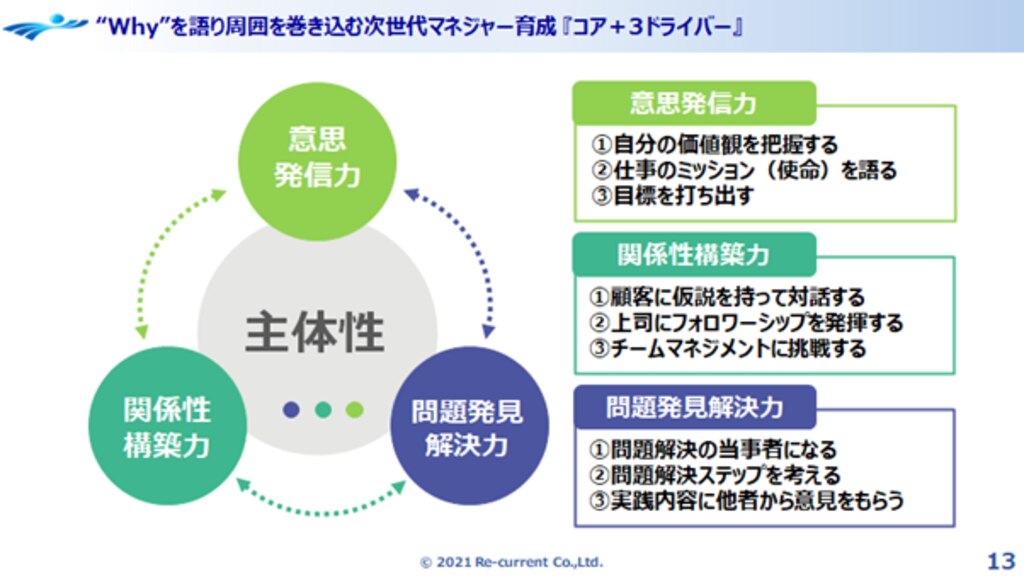 フォロワーシップは、コアとなる「主体性」+3つのドライバーによってトレーニングします。