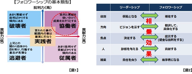 フォロワーシップは単独では影響力を発揮できません。リーダーによるリーダーシップとの関係の中で効果を発揮します。(図2参照)