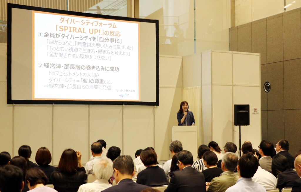 そして、大正大学・田中准教授にご講演いただき、最後に森永製菓株式会社の藤本陽子様より2019年2月に行われたダイバーシティフォーラム「SPIRAL UP!」のその後と今後の取り組みについてお話しいただきました。