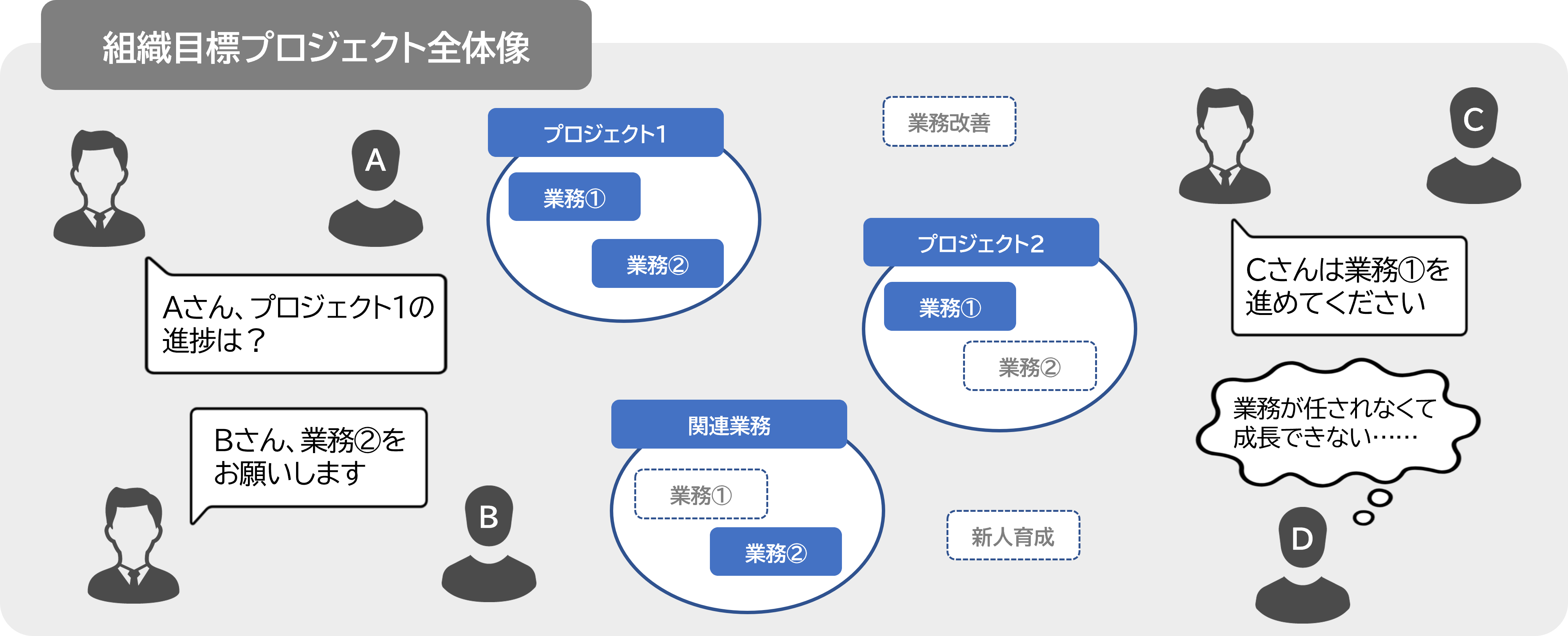 巻き取り型マネジメントのもとで職場コミュニケーションを行うと、上長とメンバーでのやりとりに偏り、間接的なタスク・業務が漏れやすくなります。