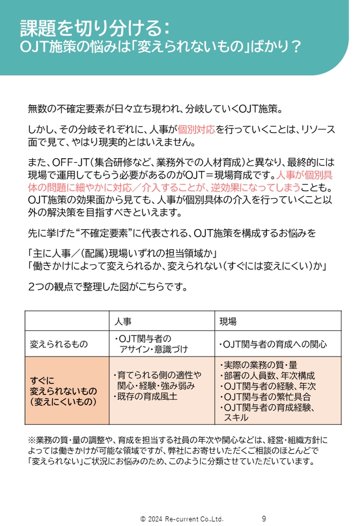 課題を切り分ける:OJT施策の悩みは「変えられないもの」ばかり?