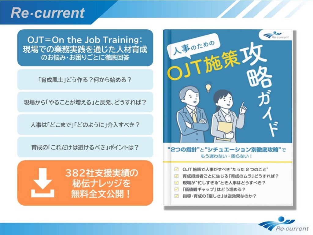 ぜひ、OJT施策運用のお手元で、お役立ていただければ幸いです。