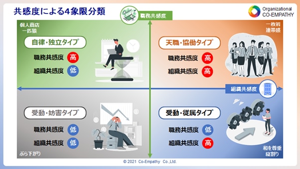 職務共感度は高いが組織共感度が低い「自律・独立タイプ」