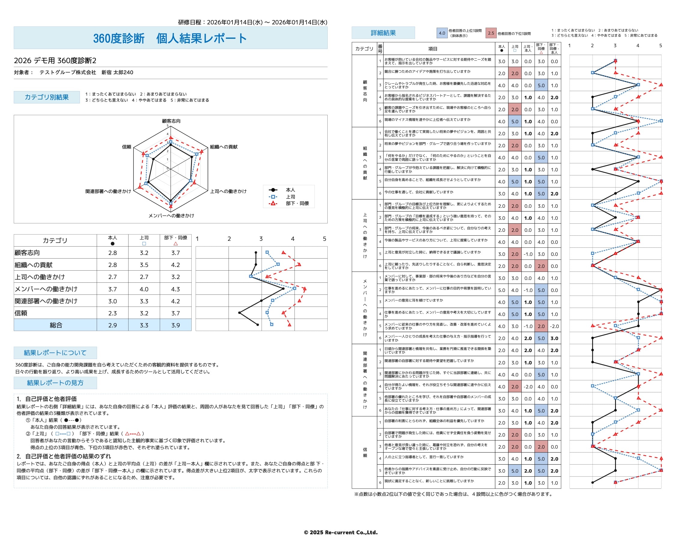 「本人・上司・部下同僚」の3方向から評価し、現状と成長課題を明らかにします。